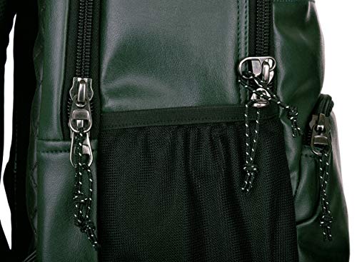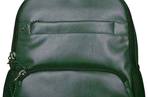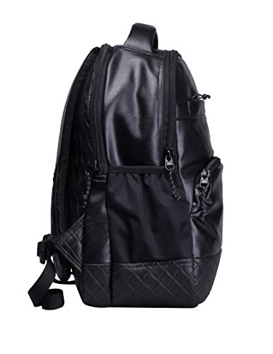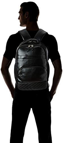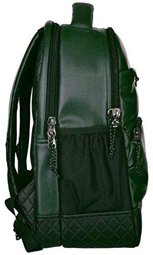 A fashionable Art- leather laptop backpack. This full-featured pack makes space for everything essential with multiple zip pockets on the exterior, plus a ready-to-go interior with padded laptop compartment and other storage solutions.