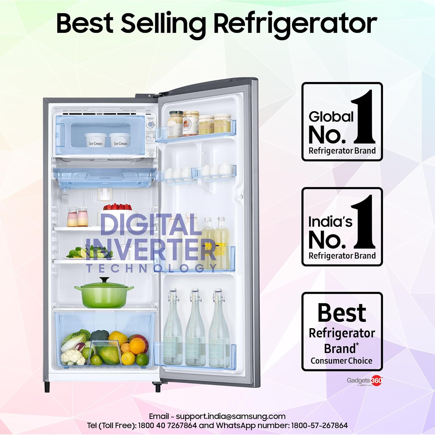 Samsung 183 L, 3 Star, Digital Inverter, Direct-Cool Single Door Refrigerator (RR20H1Y23S8/HL, Silver, Elegant Inox, Single Touch Defrost, 2026 Model)